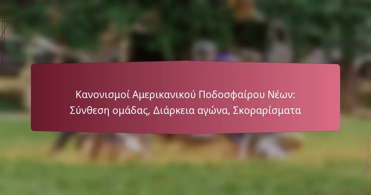 Οι κανονισμοί του αμερικανικού ποδοσφαίρου για νέους καθορίζουν βασικές οδηγίες για τη σύνθεση των ομάδων, τη διάρκεια των αγώνων και την βαθμολόγηση, εξασφαλίζοντας ένα ασφαλές και δίκαιο περιβάλλον για τους νέους αθλητές. Οι κανόνες της ομάδας διαφέρουν ανάλογα με την ηλικιακή ομάδα και τη λίγκα, ενώ οι αγώνες διαρκούν συνήθως από μία έως δύο ώρες, δομημένοι γύρω από τέταρτα ή ημίχρονα. Η βαθμολόγηση βασίζεται σε συγκεκριμένες φάσεις, με καθορισμένες αξίες πόντων για τα touchdowns και τα field goals, καθιστώντας σημαντικό για όλους τους συμμετέχοντες να κατανοούν αυτές τις δυναμικές για αποτελεσματική παιχνιδιού.