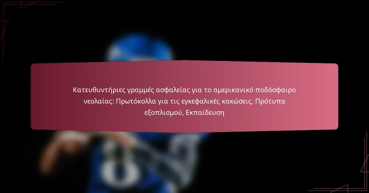 Η εξασφάλιση της ασφάλειας των νεαρών αθλητών στο ποδόσφαιρο είναι υψίστης σημασίας, με βασικές κατευθυντήριες γραμμές που εστιάζουν σε πρωτόκολλα για τις εγκεφαλικές κακώσεις, πρότυπα εξοπλισμού και προγράμματα εκπαίδευσης. Αυτά τα πρωτόκολλα τονίζουν τη σημασία της αναγνώρισης των συμπτωμάτων και της εφαρμογής ασφαλών πρακτικών επιστροφής στο παιχνίδι, ενώ τα πρότυπα εξοπλισμού διασφαλίζουν ότι όλος ο προστατευτικός εξοπλισμός πληροί τις κανονιστικές απαιτήσεις ασφάλειας. Επιπλέον, η εκπαίδευση των προπονητών και των παικτών είναι απαραίτητη για την προώθηση ασφαλών τεχνικών και τη μείωση των κινδύνων τραυματισμών καθ’ όλη τη διάρκεια της σεζόν.